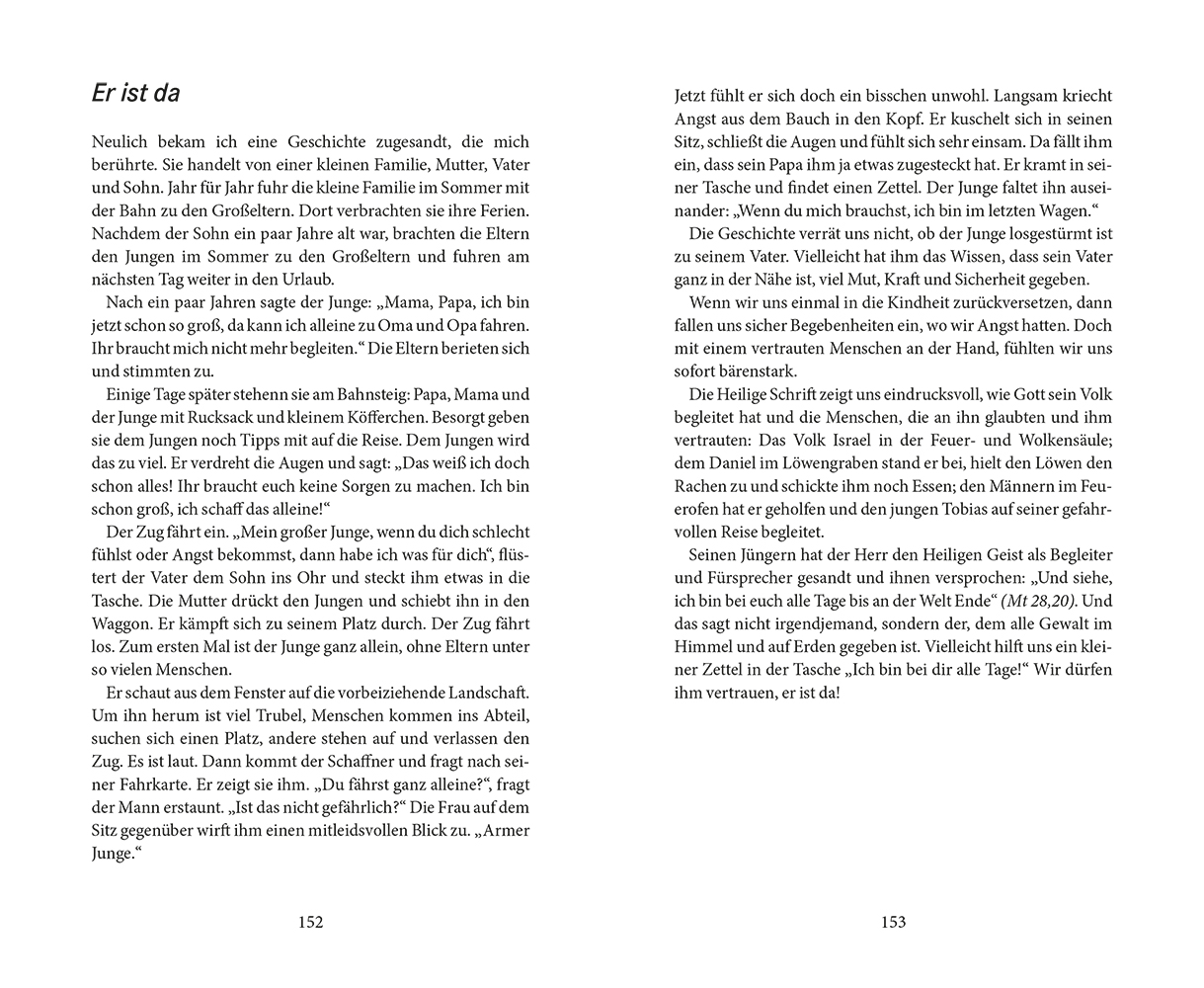 „Nachdenken Nachfolgen” war eine der beliebtesten Rubriken in der Zeitschrift Unsere Familie. Eine Auswahl der Beiträge findet sich in den Büchern In Freude wie in Leid und Mit dir alle Tage. Die Texte sind in thematische Gruppen gegliedert. Sie beschreiben Alltagssituationen und geben wertvolle Impulse für das christliche Leben – auch in schwierigen Lebenssituationen. Ein Stichwortverzeichnis und ein Bibelstellenregister erleichtern die Suche zu bestimmten Themen.