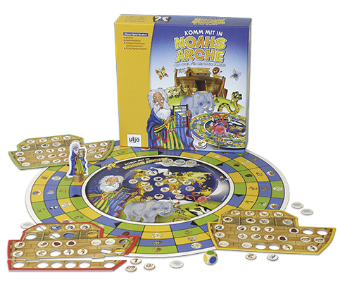 Ein spannendes Familienspiel rund um Noah, die Arche und die Rettung der Tiere. Jeder Spieler baut seine eigene Arche, würfelt und versucht so schnell wie möglich von allen Tieren je zwei Stück auf sein Schiff zu bringen.
