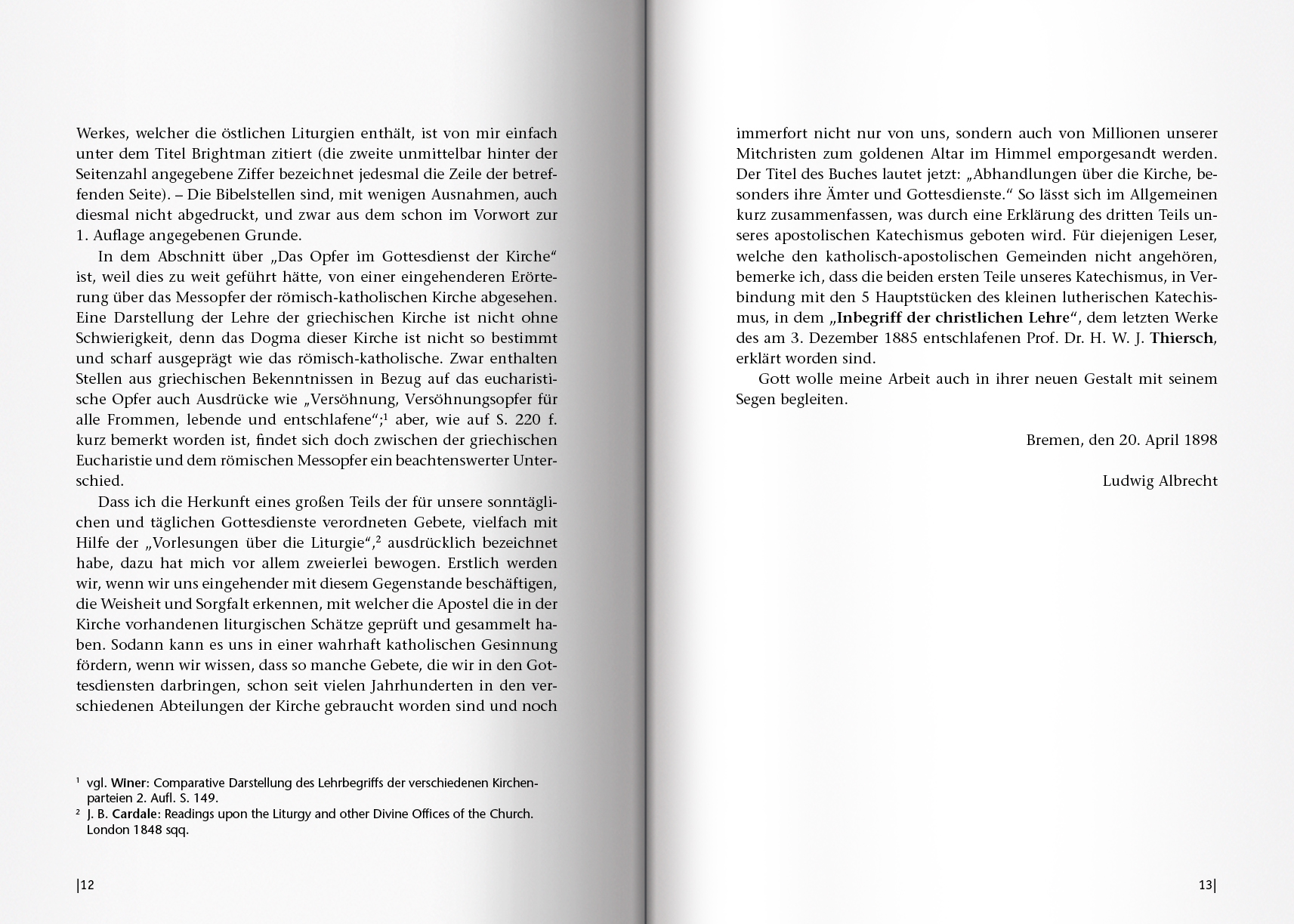 In der Zeit des Wachstums der katholisch-apostolischen Gemeinden erschien 1896 Ludwig Albrechts Buch „Abhandlungen über die Kirche insbesondere ihre Ämter und Gottesdienste“, das als Ergänzung zum 1885 veröffentlichten Katechismus von Heinrich W. J. Thiersch „Inbegriff der christlichen Lehre“ angelegt ist.