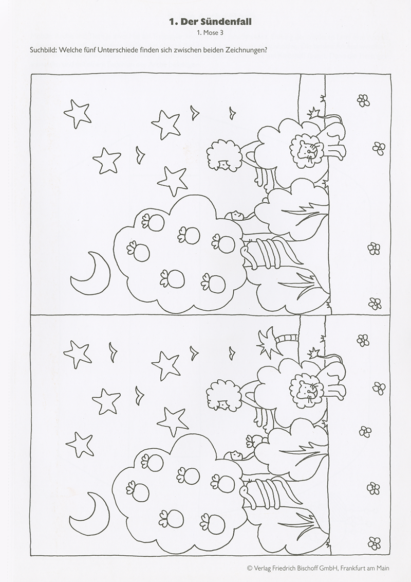 Weitermalbilder, Suchbilder, Aussparbilder, Puzzles, Bewegungsbilder, Schiebebilder, Mobile, Drehbilder, Spiele, Bastelanleitungen u.v.m. erleichtern den Zugang und das Erarbeiten von biblischen Geschichten. Die Kinder entdecken bekannte Begebenheiten wie „Der Sündenfall“, „Die Arche Noah“ und „Der gute Hirte“ neu und erobern sich weniger Bekanntes aus der Bibel wie „Haman wird verurteilt“ oder „Gideons Sieg“.