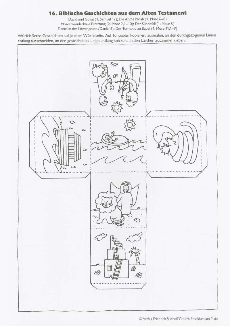 Eine der besten Möglichkeiten, Kindern biblische Themen spielerisch zugänglich zu machen, sind Bibelgeschichten. Unser Heft mit 31 leicht heraustrennbaren Kopiervorlagen enthält viele Anregungen zum Basteln, Malen und Spielen rund um biblische Geschichten: