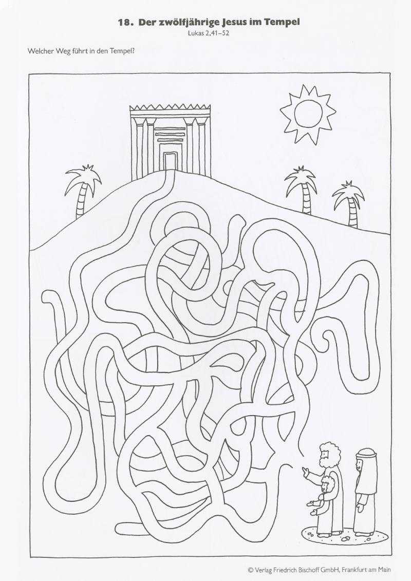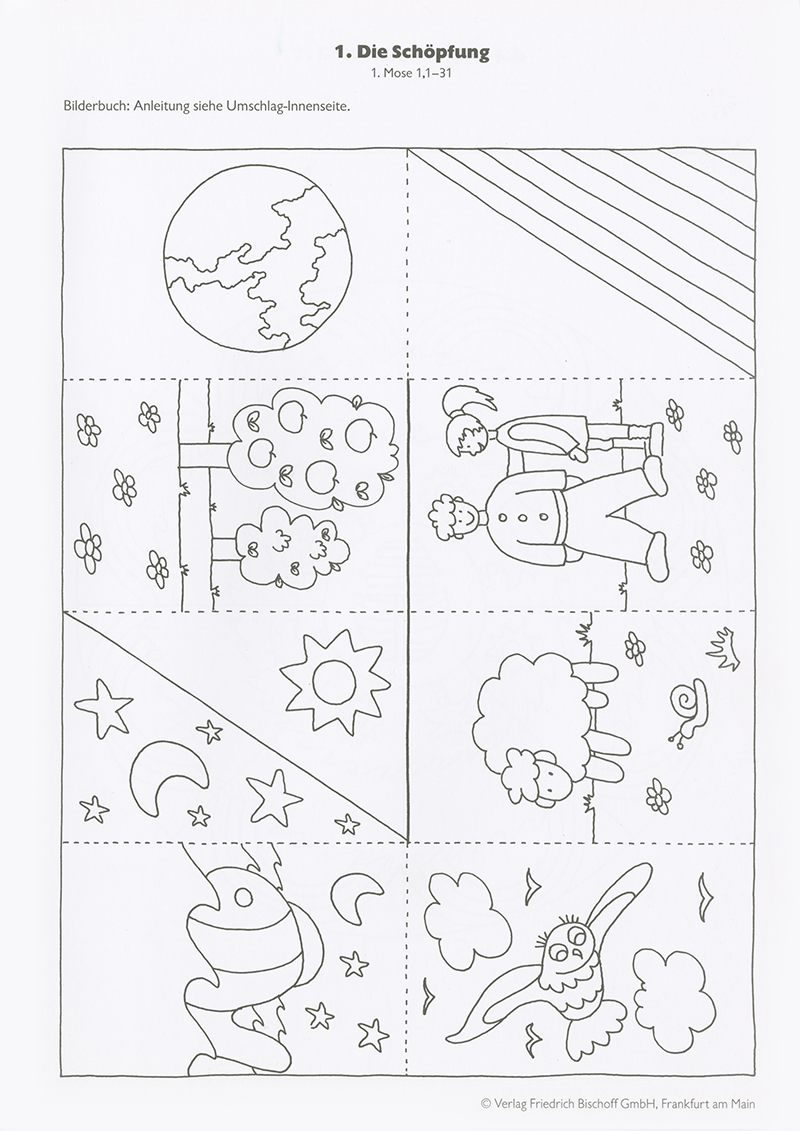 Weitermalbilder, Suchbilder, Aussparbilder, Puzzles, Bewegungsbilder, Schiebebilder, Mobile, Drehbilder, Spiele, Bastelanleitungen u.v.m. erleichtern den Zugang und das Erarbeiten von biblischen Geschichten. Die Kinder entdecken bekannte Begebenheiten wie „Der zwölfjährige Jesus im Tempel“, „Die Speisung der 5000“ und „Vom verlorenen Sohn“ neu und erobern sich weniger Bekanntes aus der Bibel wie „Die Kleidung der Priester“ oder „Reine und unreine Tiere“.