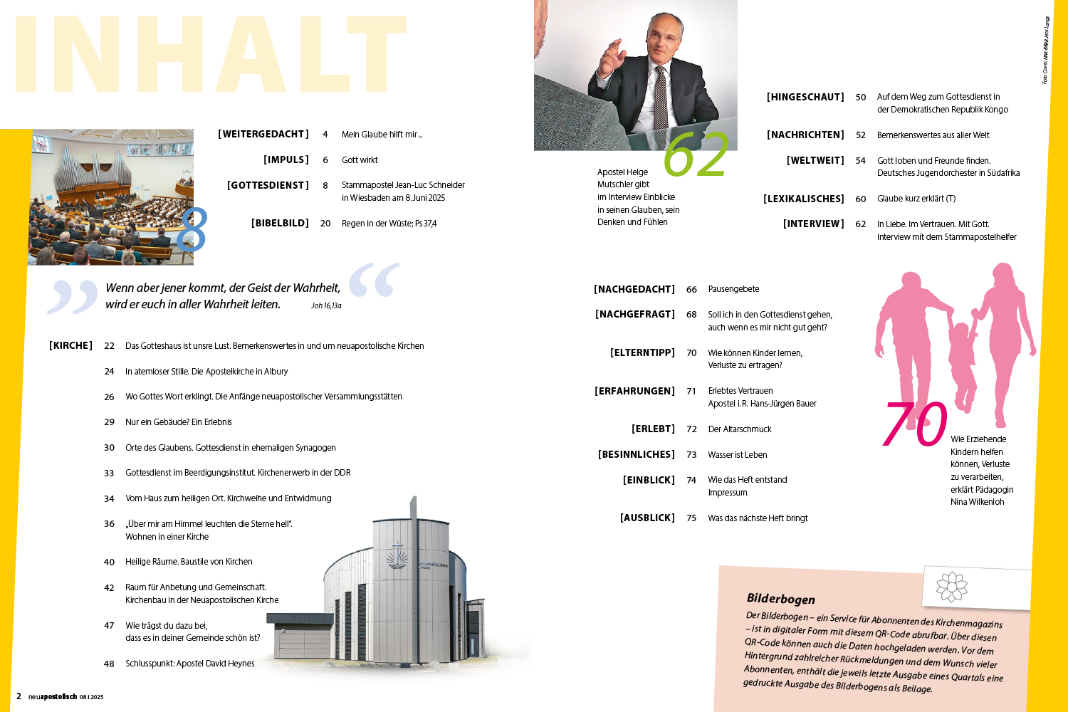 Glaubensinhalte für alle neuapostolischen Christen im deutschsprachigen Raum in einem Heft: neuapostolisch heißt das neue Kirchenmagazin der Neuapostolischen Kirche.